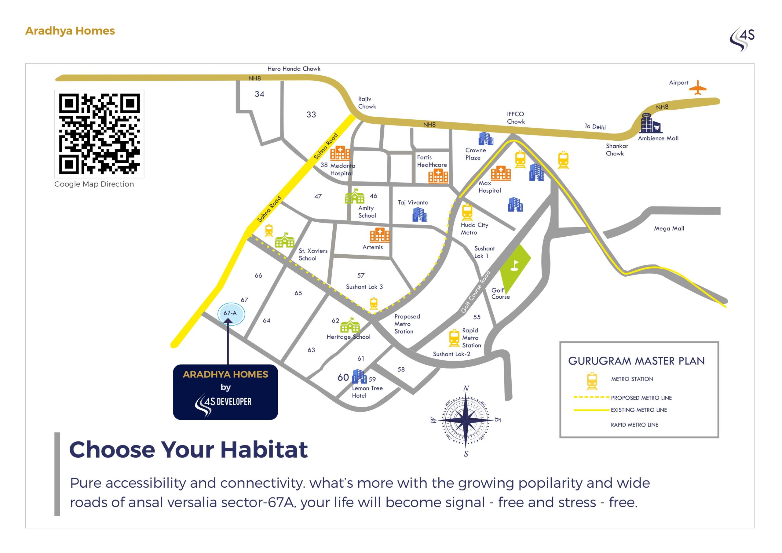 Everyone needs a place that is hugely comfortable and convenient for all their family and friends whenever they want to visit. Aradhya Homes 67A township offers you the perfect solution. Aradhya Homes offers and promises the most contemporary 4BHK Ready To Move apartments and an uncluttered ambiance. It is a commitment to modern living and a touch of traditionalism. Aradhya Homes low-rise independent floors are situated in the Ansal Versilia, Sector 67A, Golf Course Extension Road, Gurgaon. which can be described as one of Gurugram’s most well-known neighborhoods. Aradhya Homes Gurgaon translates to wandering around, flowing on in an ideal ecosystem that nurtures, sustains, and provides nourishment from within. It’s about spaces that are more than areas to live in. they also promote and cultivate an atmosphere of warmth and genuine community. The roads in this township and the residential complex provide a feeling of ease, security, and peace. The lavish residential project 4S Aradhya Homes’s launch date is April 2020. the first residents were able to move in on September 20, 2021. You need not worry about legal compliance as the property is registered under RERA with the number HARERA/GGM/411/143/2020/27.